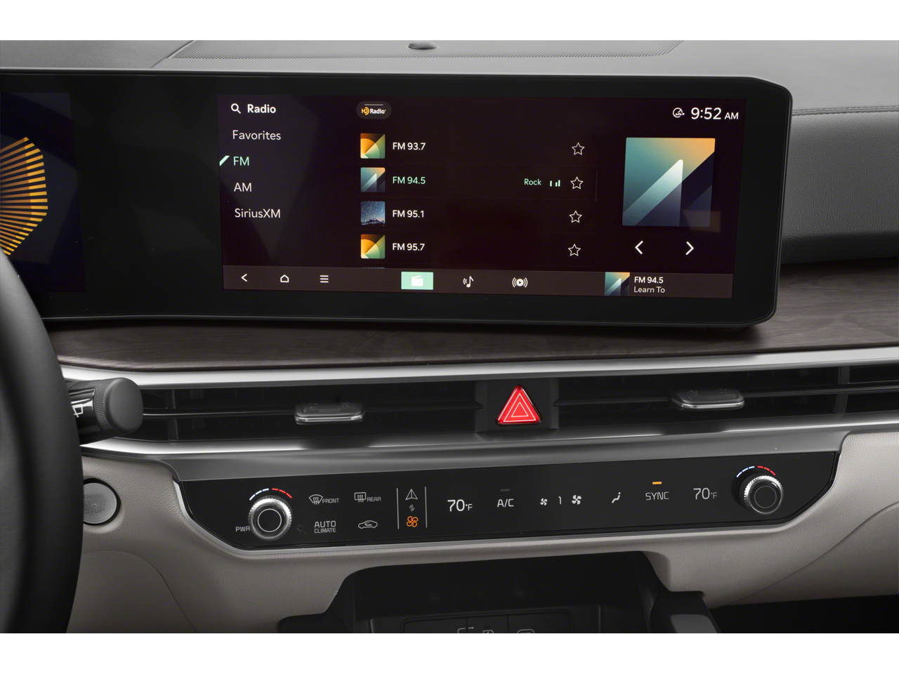 - Radio: AM/FM Standard Sound System -inc: 12.3" ccNC lite touchscreen, navigation, HD Radio, Bluetooth® w/audio remote control, wireless Android Auto and wireless Apple CarPlay, voice recognition, Sirius XM, modem, Kia Connect, Wi-Fi hot spot, Over-The-Air Updates (OTA), 6 speakers and USB
