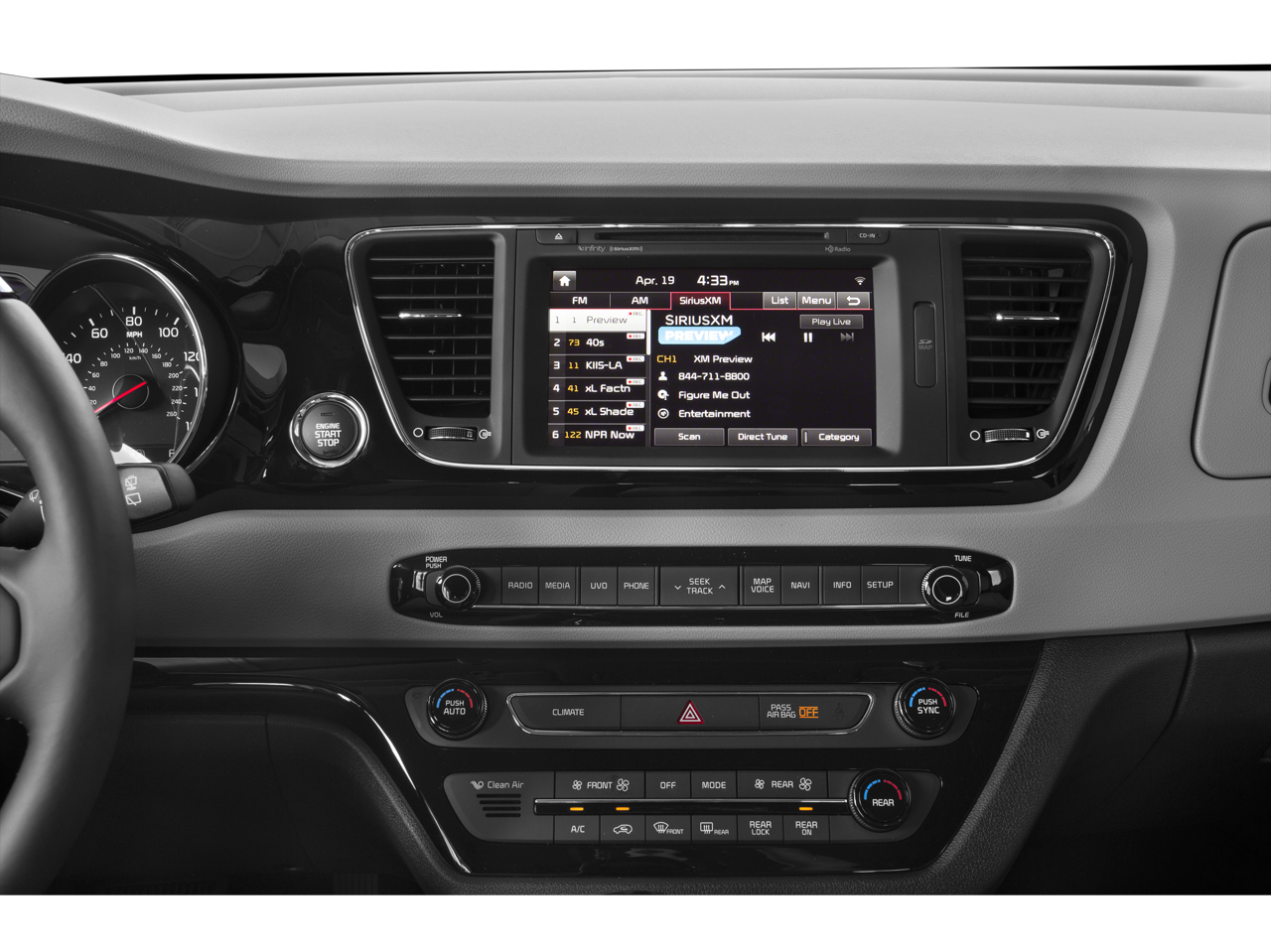 - Radio: AM/FM/CD/MP3/SiriusXM Audio System -inc: navigation VIT 4.0, 8 Infinity speakers (including subwoofer and external amplifier), Bluetooth®, USB/auxiliary input jacks, UVO2 telematics and 4.3" touchscreen